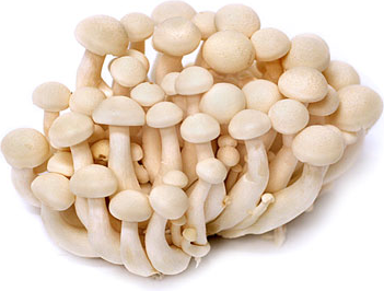Honey Mushrooms - WhiteSmooth, petite globular caps and slender, stems that connect to form a cluster on a thick, inedible base. Also known as Shimeji Mushrooms.