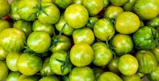 Green TomatoesSkin is extremely firm and hard, with an olive green colour. It has bright chartreuse flesh. Deliciously sharp, puckering, and astringent flavour.