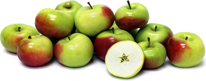 Northern Spy ApplesSkin colour is a green ground, flushed with red stripes where not shaded.