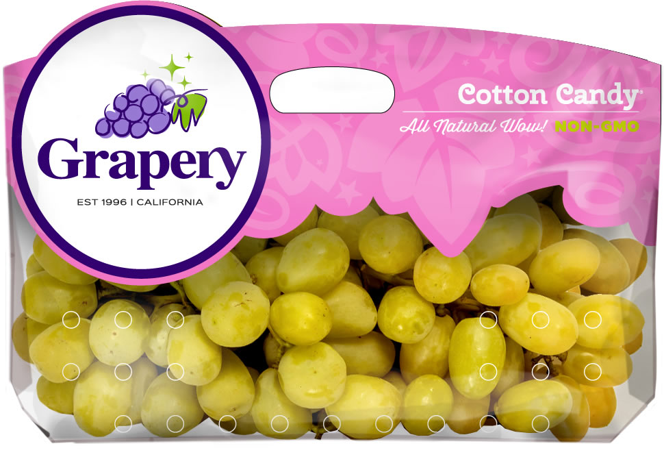 Cotton Candy GrapesMedium to large in size and are oval to oblong in shape, growing in loose, sizeable clusters. The green skin is thick, smooth, and firm and the flesh is translucent green, plump, seedless, and juicy. Flavour that is unmistakably like cotton candy.
