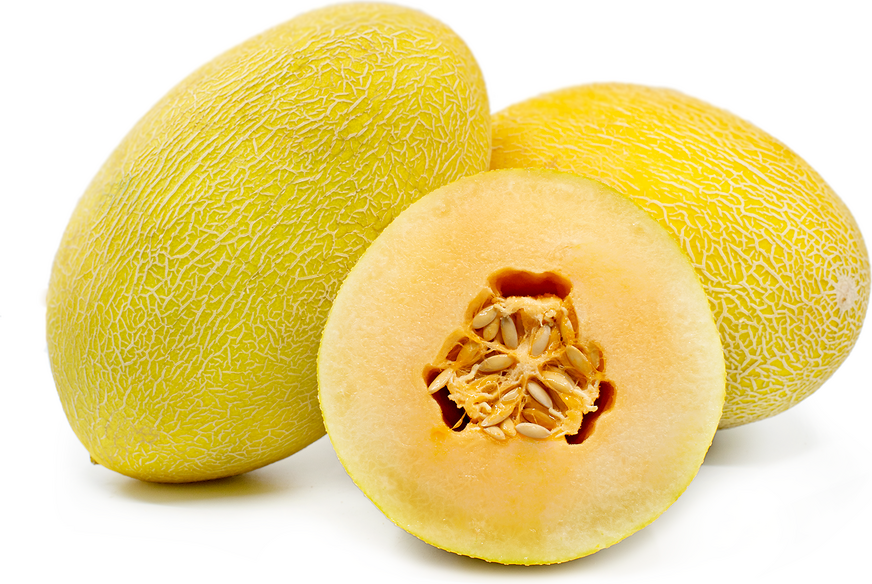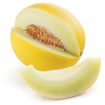 Golden HoneydewsThis somewhat oval melon fruit has a smooth, waxy yellow rind/skin, creamy white flesh and seeds. The fruit has the taste of apple, watermelon and guava combined.