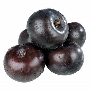 Plums, BlackThin skin, a single central pit and a succulent flesh when ripe. Colours vary depending on variety.