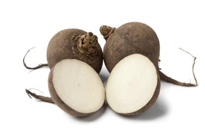 Black RadishesWhite flesh encased in a black or dull brown skin. Significantly larger than traditional spring radishes.